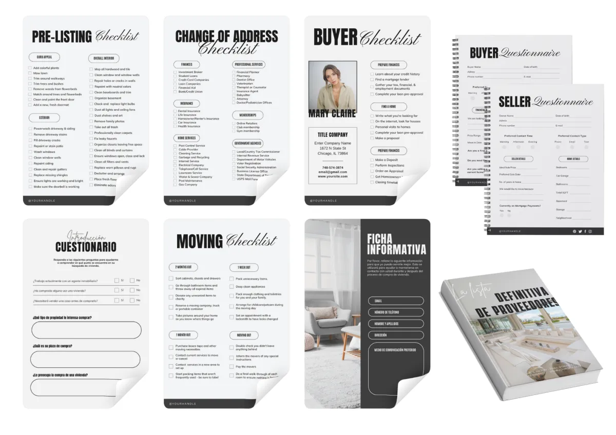 Con más de 200 plantillas incluidas, ModernAgentKit ofrece una gama completa de recursos para todas sus necesidades inmobiliarias. Desde guías para vendedores y compradores hasta publicaciones en redes sociales, lo tenemos todo cubierto.